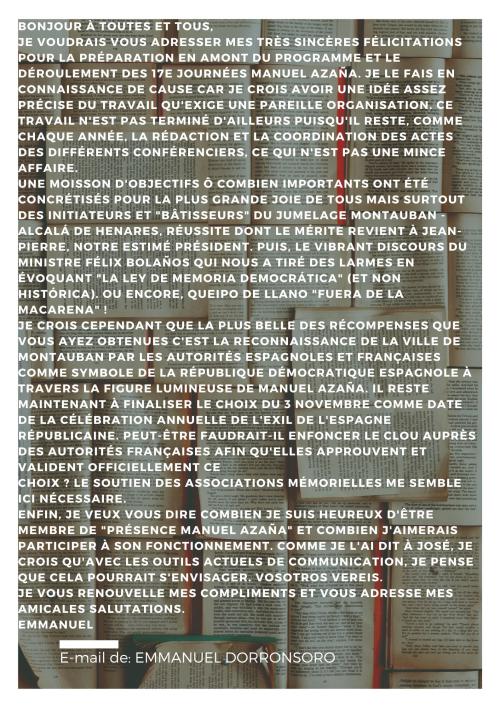 Courriers recus par Email suite au journées Azaña 2022